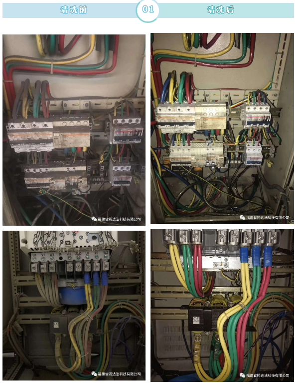 經(jīng)本公司帶電清洗養(yǎng)護(hù)后,設(shè)備表面及內(nèi)部死角等地常年堆積的碳粉和油污的混合物得到徹底去除,設(shè)備運(yùn)行溫度降低,設(shè)備絕緣值恢復(fù),杜絕可能發(fā)生的安全隱患。